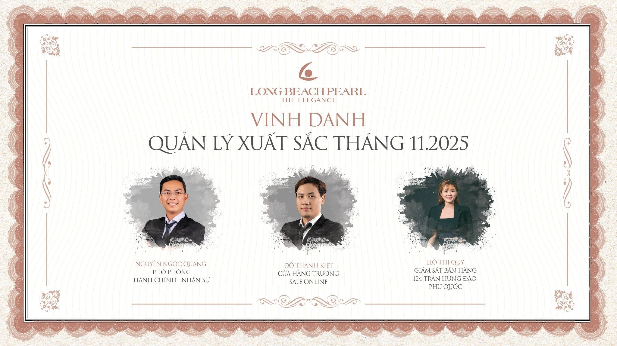 Chương trình vinh danh tại Long Beach Pearl được khởi xướng bởi Tổng Giám Đốc – TS. Lê Như Hiếu, với mong muốn xây dựng một môi trường làm việc nơi mỗi nỗ lực đều được ghi nhận, mỗi đóng góp đều được trân trọng.